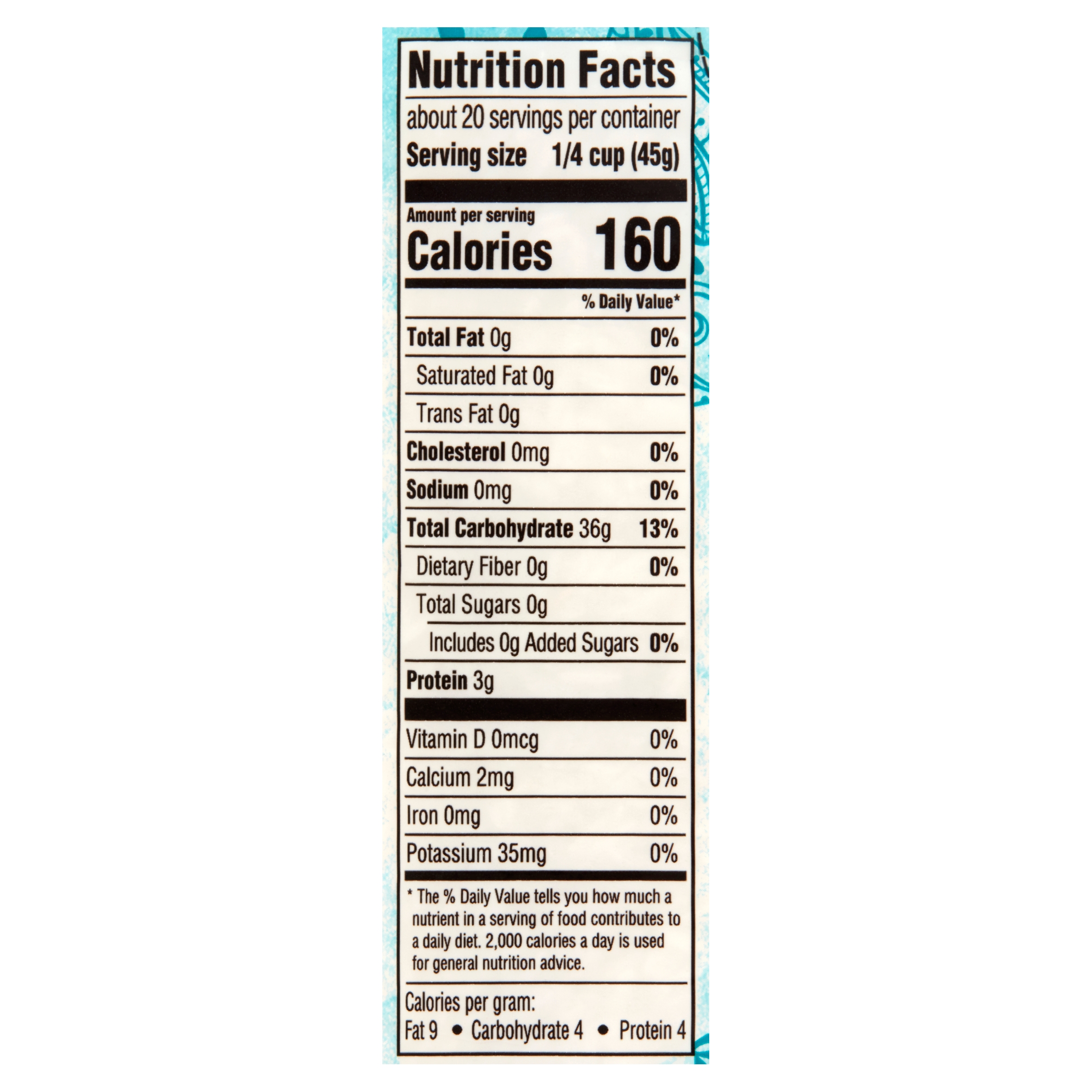 Jasmine Rice Thai Jasmine 48 Oz 3 Lbs 1 36 Kg from static.openfoodfacts.org Total carbs in a 1/4 cup brown basmati rice is 35 (g), 12% of daily value. One cup of cooked white rice contains 49g of net carbs, almost no fiber, and 4g of protein 1. Calories in brown jasmine rice based on the calories, fat, protein, carbs and other nutrition information submitted for brown jasmine rice. There are many varieties of rice, with most types of rice hovering around 45 grams of carbohydrates per cup. Eating 1 cup of rice, along with veggies or beans will keep you full for a really long time. There are 164 calories in a 1/4 cup of dry jasmine rice.: Calories from fat 15.8 ( 7.3 %) % daily value *. Trader joe's brown jasmine rice 1/4 cup (1 serving) calories: